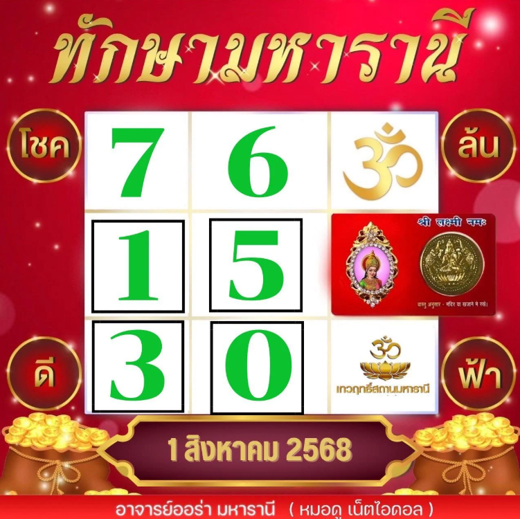 เมื่อวันที่ 31 กรกฎาคม 2568 อาจารย์ออร่า มหารานี ได้ปล่อยเลขเด็ดจากตารางทักษามหารานีออกมาบนโซเชียลมีเดียส่วนตัว โดยเลขชุดที่ได้รับความสนใจสูงสุดประกอบด้วย 76, 15, 30, 713, และ 650 ซึ่งอาจารย์อ้างว่าเป็นเลขที่ได้มาจากการคำนวณผ่านศาสตร์ทักษาโบราณที่ผสมผสานกับพลังดวงดาวในช่วงเวลานี้